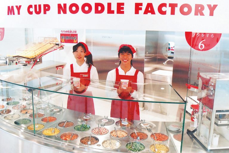 好みのスープや具材を選び、オリジナルの「カップヌードル」を作ることができる「マイカップヌードル・ファクトリー」