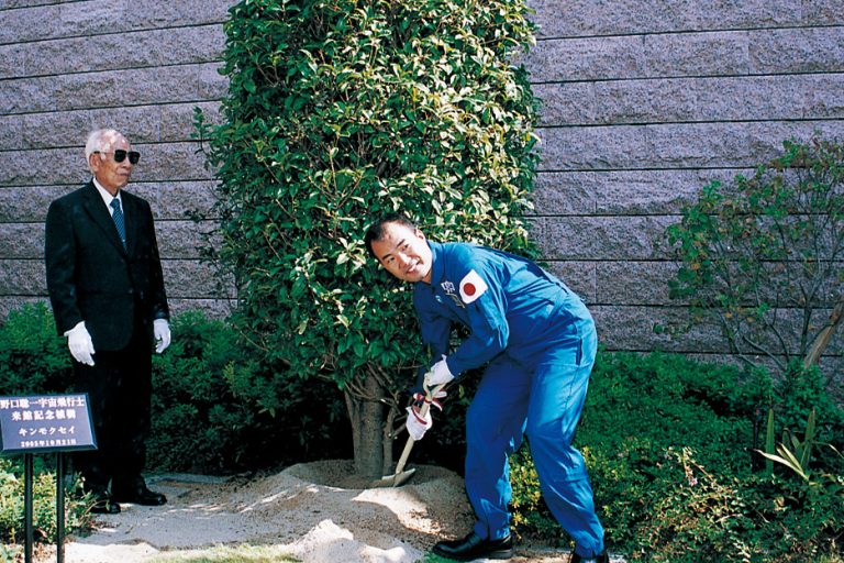 記念植樹の後、野口宇宙飛行士は、2階のセミナーホールにおいて、安藤百福をはじめ日清食品の関係者130名を前に「技術報告」を行った。このなかで野口宇宙飛行士から、「スペース・ラム」が宇宙では、機能的にも味の面でもパーフェクトであったこと、フライト2日目に最初に食べたのは「とんこつ味」であったこと、ロシア人、アメリカ人クルーにも「カレー味」「みそ味」が好評だったことなどが披露された。