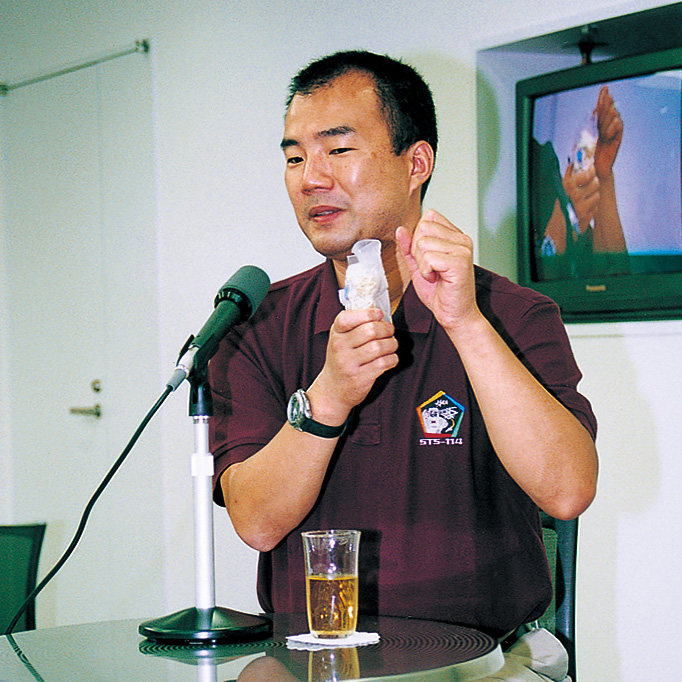 野口宇宙飛行士、技術報告のため「インスタントラーメン発明記念館」に来館。