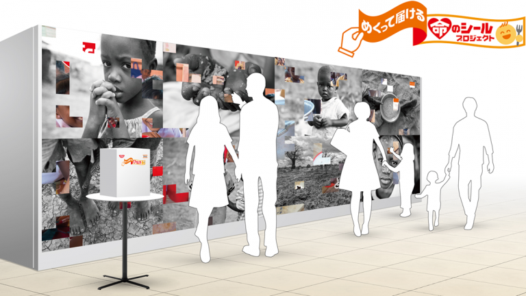 2016.10 百福士プロジェクト第16弾「めくって届ける。命のシールプロジェクト」 本プロジェクトは、飢餓に苦しむ子どもたちの支援を目指し「カップヌードルミュージアム」と「インスタントラーメン発明記念館」で実施した (11月16〜28日) 。3,200枚のシールで構成した巨大ボードを館内に設置し、来館者は寄付金100円でシール1枚をめくることができる。全シールをめくれば両館で64万円、当社からも同額を拠出、計128万円を国連WFPに寄付。