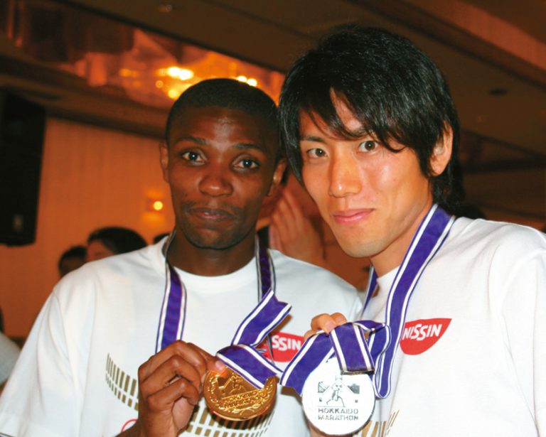 2007.9 「2007北海道マラソン」で、 金・銀を独占 2007年9月9日、札幌市で開催された「2007年北海道マラソン」で、マラソン初挑戦のジュリアス・ギタヒ選手が優勝、同じく初マラソンの高見澤勝選手が準優勝した。マラソンでの優勝も、1、2フィニッシュも陸上競技部創部以来、初の快挙であった。