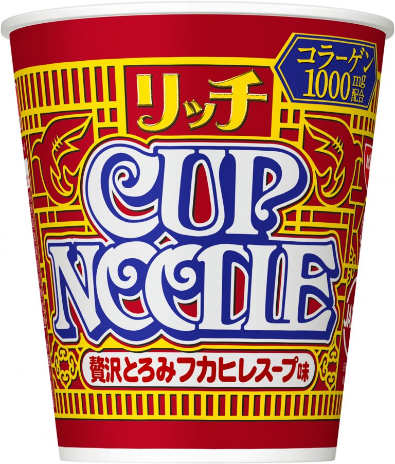 2016.4 日清食品が「カップヌードルリッチ」を新発売 「カップヌードル」誕生45周年を記念して、日清食品ではプレミアムタイプの「カプヌードルリッチ」を新発売。4月11日、「贅沢とろみフカヒレスープ味」と「贅沢だしスッポンスープ味」を売り出した。レギュラーサイズより価格が50円高いが、質にこだわり、よりおいしいものを求めるアクティブシニア層をターゲットに、カップヌードルブランドの新戦略を展開。