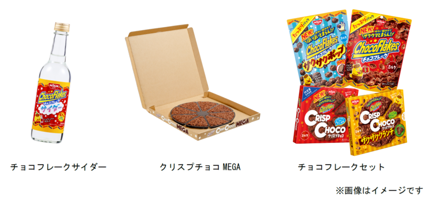 「チョコフレーク」のような甘さと香りを楽しめる「チョコフレークサイダー」や、直径約30cmのピザのように大きな「クリスプチョコMEGA」、アレンジや食べ比べが楽しめる「チョコフレーク」4種の詰め合わせセットが、抽選で合計1,000名に当たります。