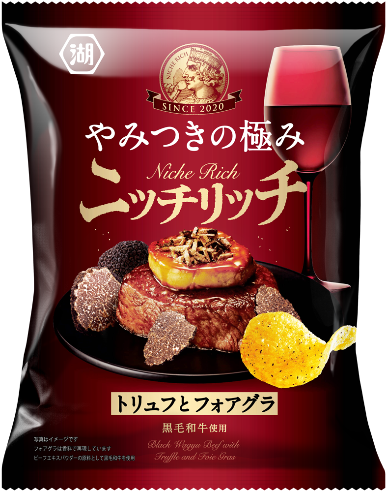 今回は、年末年始に高まる「ちょっと贅沢なお酒や料理を楽しみたい」というニーズに着目し、高級食材として知られる「トリュフとフォアグラ」「伊勢海老と雲丹」をそれぞれ贅沢に組み合わせました。いずれもお酒との相性が良く、"至福の食べ合わせ" をお楽しみいただけます。カリッと堅めに揚げたポテトチップスに、素材の旨みと芳醇な香りが重なり、噛むほどにマリアージュする奥深い味わいを実現しました。思わず手が伸びる、まさに "やみつきの極み" ポテトチップスです。