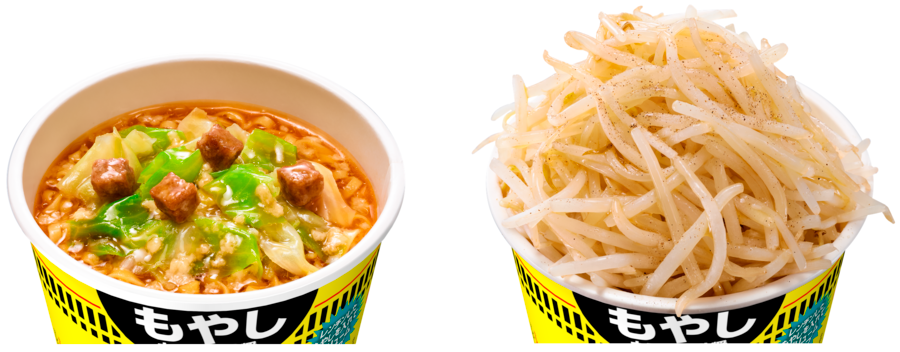 「カップヌードル 背脂豚骨醤油 ビッグ」は、醤油をベースに豚骨のうまみをきかせた濃厚な味わいのスープが特長です。別添の「特製豚オイル」を加えると、豚とニンニクの香りが際立ち、パンチのある味わいに仕上がります。具材には "謎肉" のほか、キャベツ、背脂を入れました。もやし1パックを電子レンジで加熱し、醤油と塩こしょうであえたものをトッピング*すれば、ボリューム満点の一杯をお楽しみいただけます。