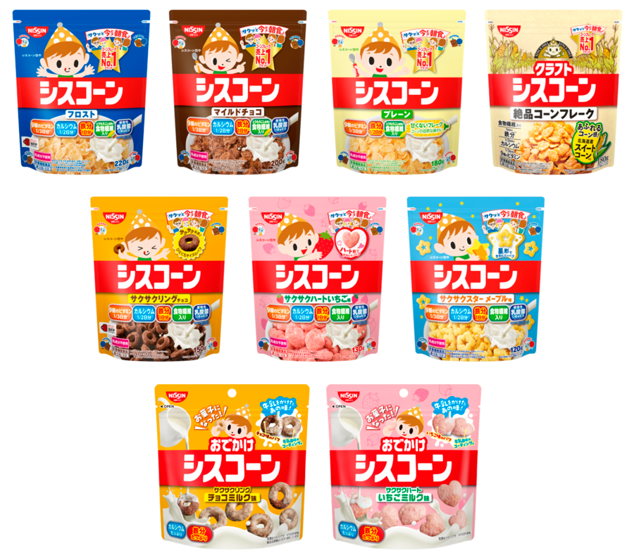 シスコーン フロスト、シスコーン マイルドチョコ、シスコーン プレーン、クラフトシスコーン、シスコーン サクサクリング チョコ、シスコーン サクサクハート いちご味、シスコーン サクサクスター メープル味