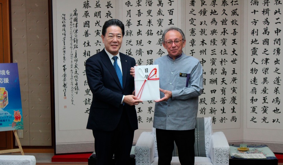 なお、贈呈式は2026年1月30日(金)に沖縄県庁にて実施。当社代表取締役社長 豊留昭浩が、おきなわアジェンダ21県民会議会長の玉城デニー沖縄県知事と面会し、寄付金目録を贈呈いたしました。