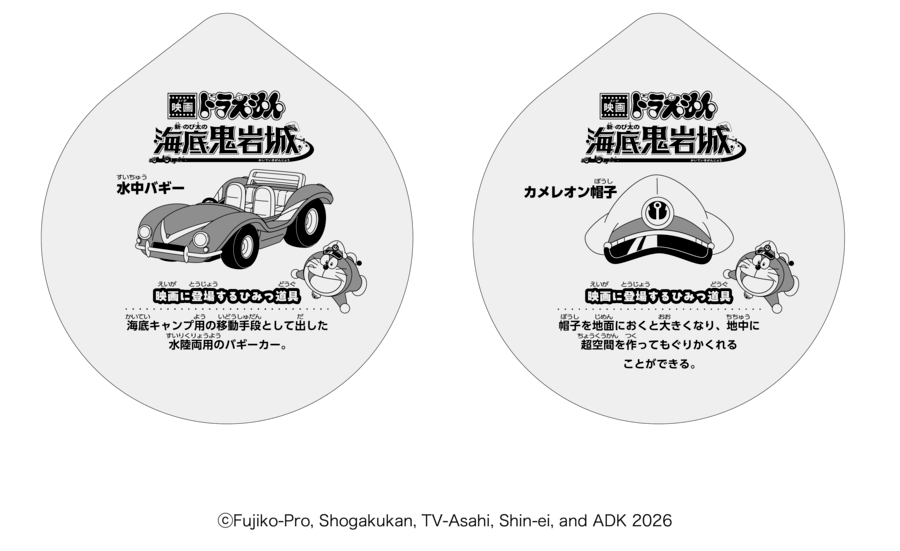 映画に登場するドラえもんの「ひみつ道具」をフタうらで紹介!