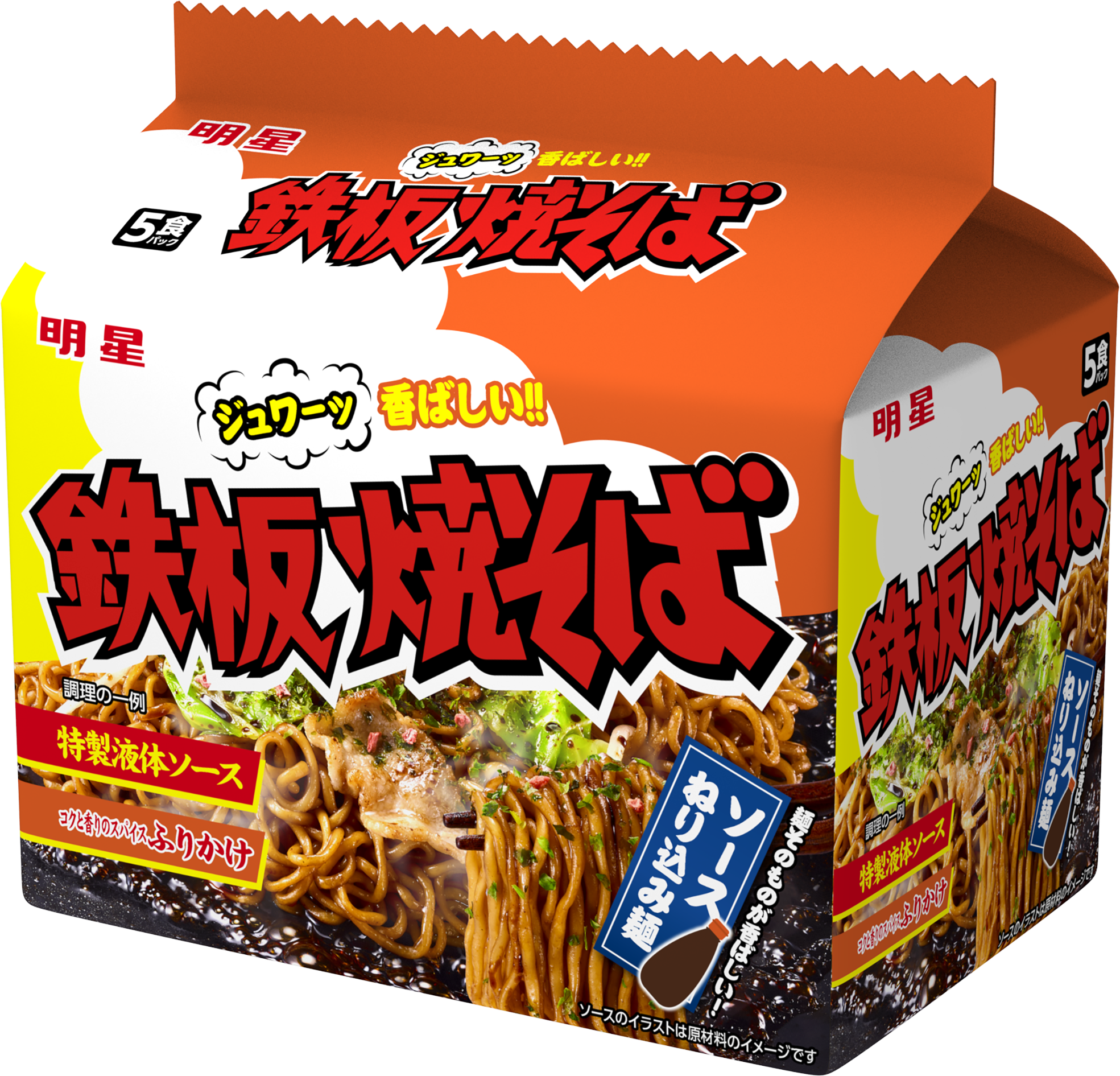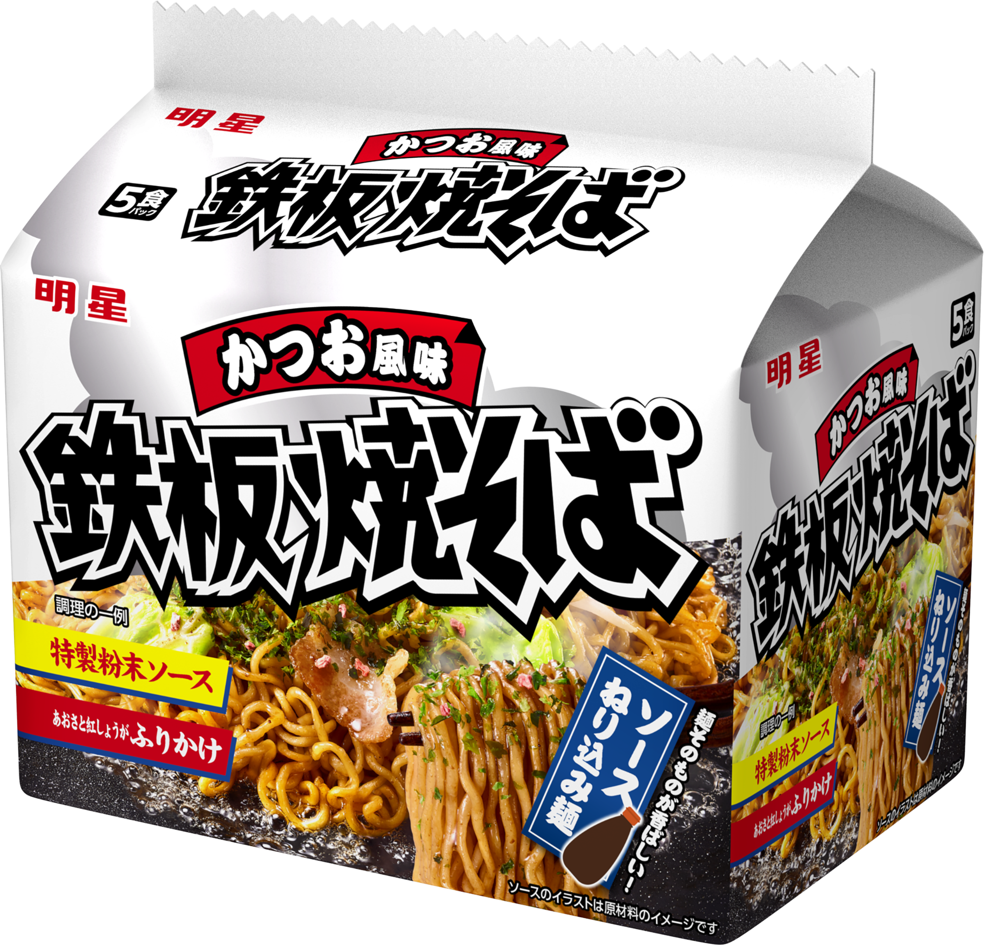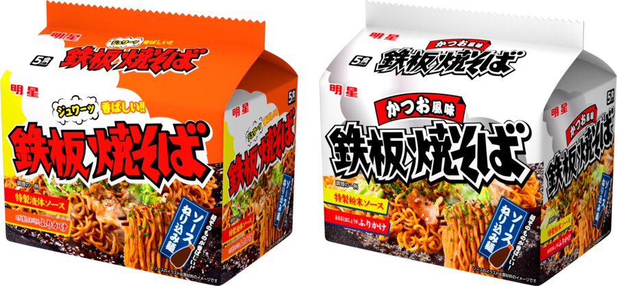 「明星 鉄板焼そば 5食パック」「明星 鉄板焼そば かつお風味 5食パック」を2026年4月6日(月)にリニューアル発売