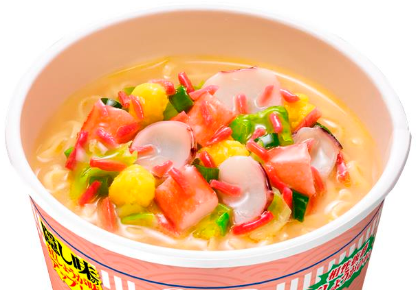 「カップヌードル 紅しょうがシーフード ビッグ」は、「シーフードヌードル」のコク深いスープに、おなじみのカニカマ、キャベツ、たまご、イカ、ネギのほか、紅しょうがチップを具材として加えました。