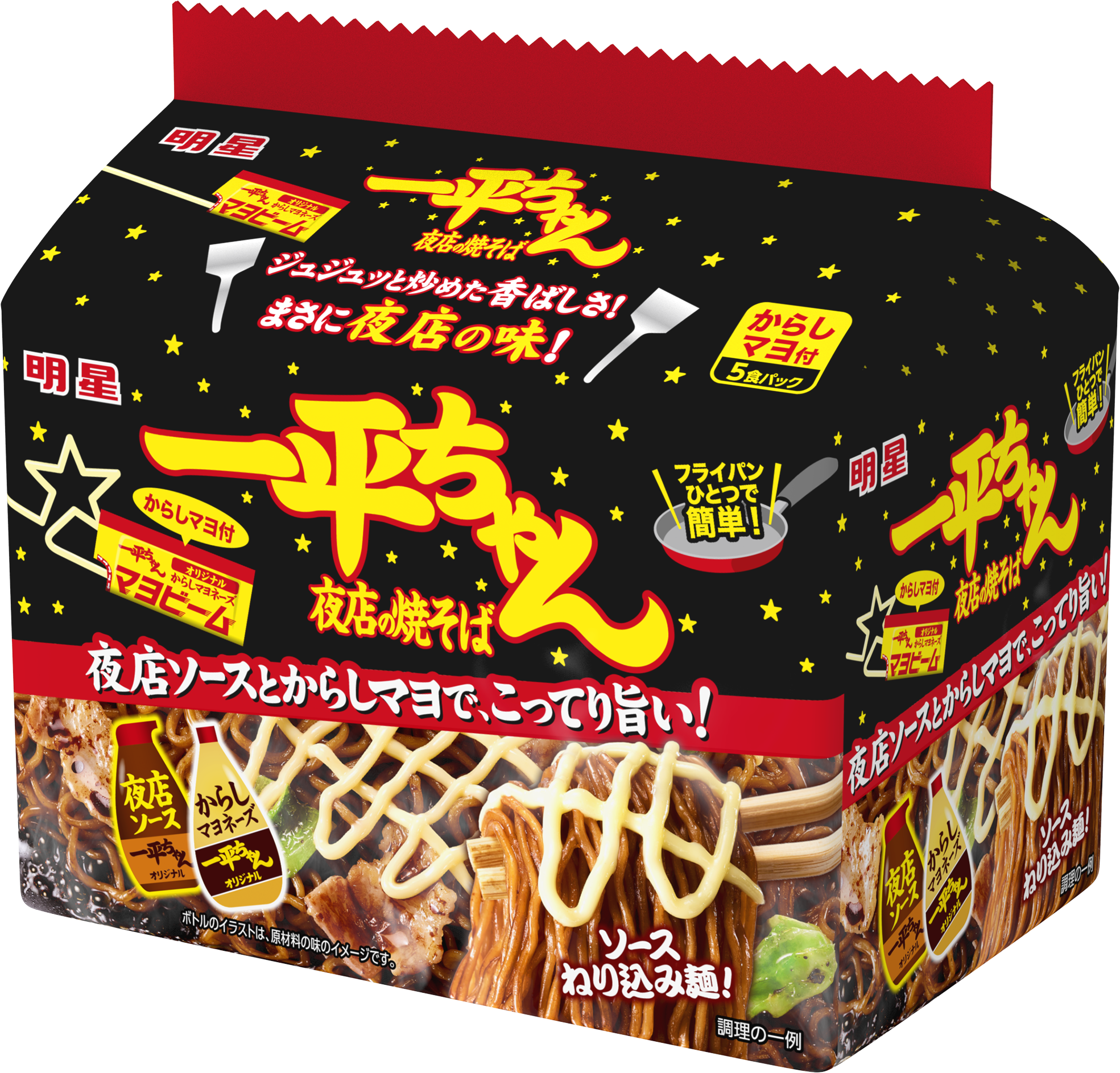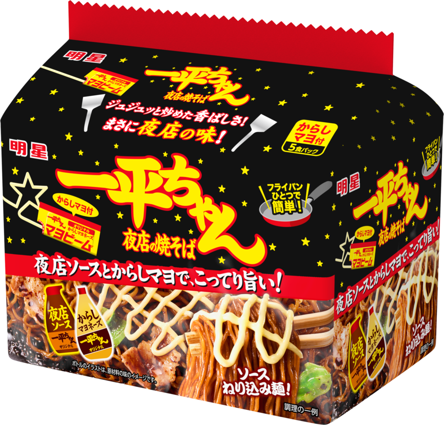 | 商品名 | 明星 一平ちゃん夜店の焼そば 袋 からしマヨ付 5食パック |