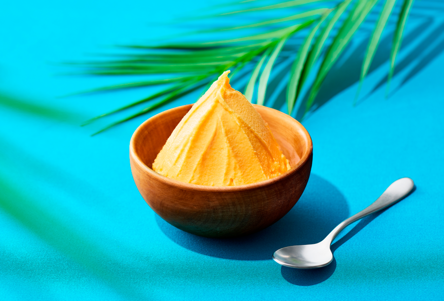 アルフォンソマンゴーの甘みとジューシーな果実感が口いっぱいに広がるジェラート。濃厚で芳醇な味わいが楽しめます。熱量:77kcal、たんぱく質:3.3g、脂質:2.3g、炭水化物:12.2g (糖質:10.2g、食物繊維:2.0g)、食塩相当量:0.1g
