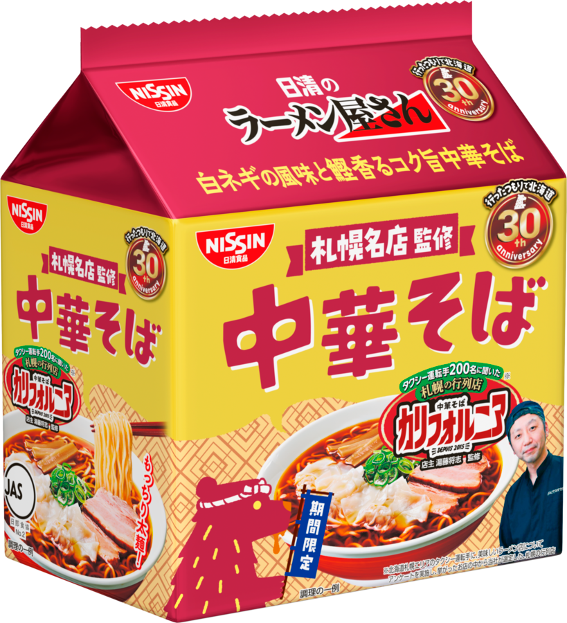 今回、発売30周年を記念し、地元のグルメ情報に詳しいタクシー運転手200名へのアンケート*で多くの支持を集めた札幌の人気店「中華そばカリフォルニア」が監修した商品を、期間限定で発売します。