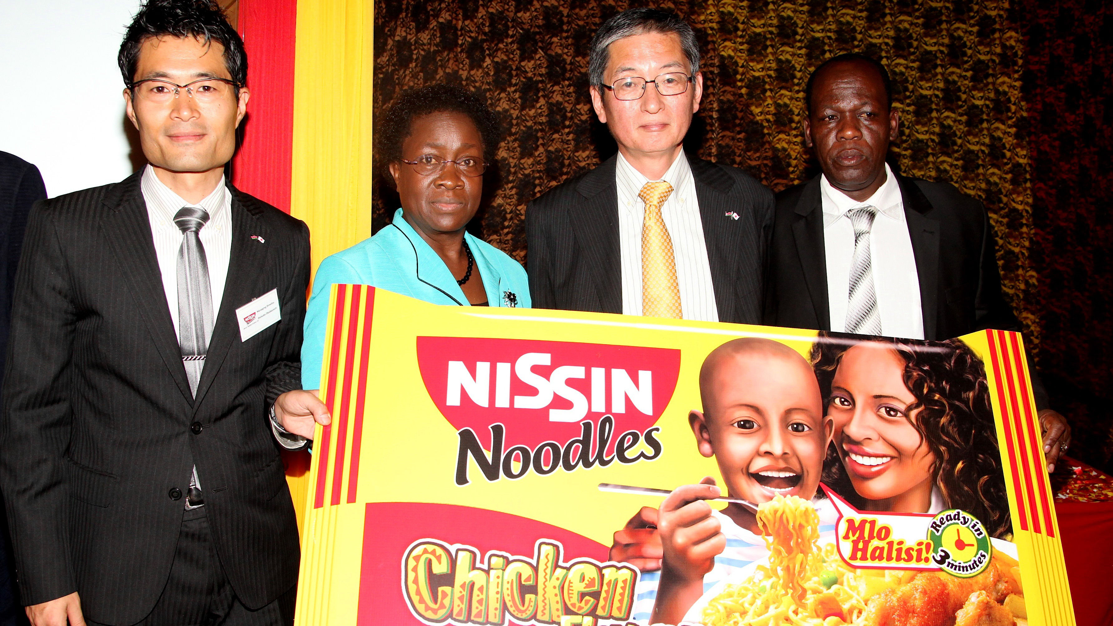 ナイロビ郊外のジョモケニヤッタ農工大学 (JKUAT) で、日清食品ホールディングスの研究スタッフと同大学研究者が、ケニアの人々の嗜好に合わせて麺が短く栄養価を高めた「チキンラーメン」を共同開発。2009年3月には同大学内にインスタントラーメンの実験室と、1日約1,000食が製造できるラインを持つ生産ラボを設置しました。この生産ラボで作られたケニア版「チキンラーメン」は、水をろ過してお湯を作る設備を搭載した特別仕様の車「チキンラーメン号」で、ケニア各地の小学校などに学校給食として届けられました。その数は、2010年7月末まででのべ236回、62,950食に上りました。2013年6月には、JKUATとの合弁会社JKUAT日清を設立し、JKUATと共同開発した「NISSIN Noodles」を2013年10月から販売しました。2018年6月には工場および生産設備をJKUATに譲渡しました。