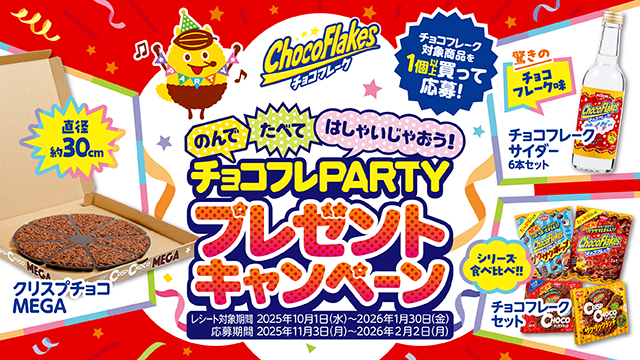 「チョコフレーク」をたべて、パーティーを盛り上げるオリジナル賞品を当てよう ! 「のんでたべてはしゃいじゃおう ! チョコフレPARTYプレゼントキャンペーン」が2025年11月3日(月) からスタート