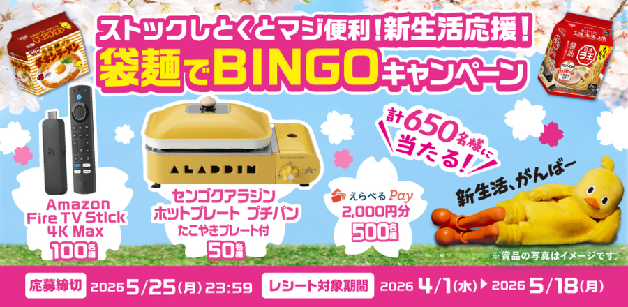 ストックしとくとマジ便利 ! 新生活応援 ! 袋麺でBINGOキャンペーン