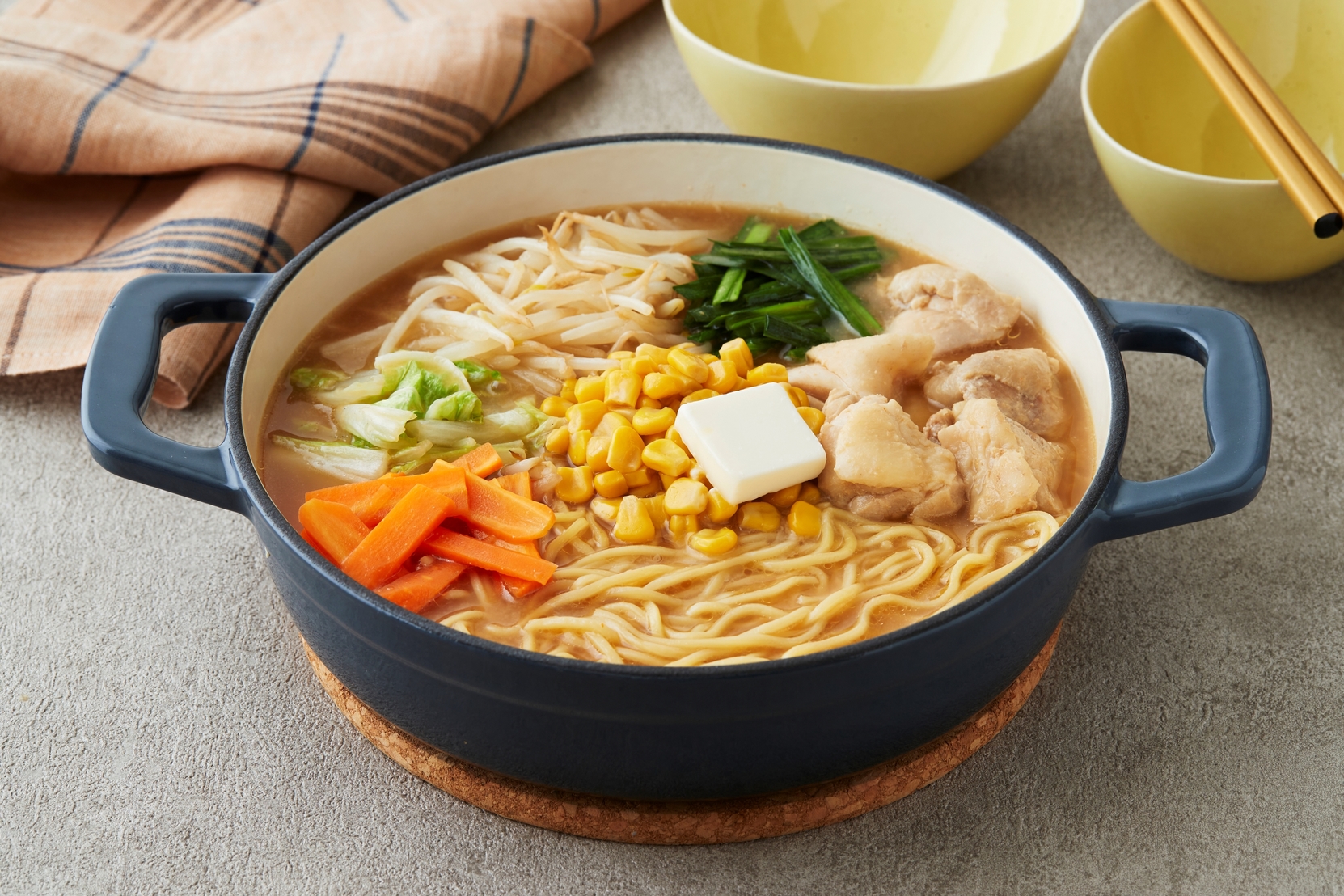 3. 具材に火が通ったら、めんを鍋に入れて再沸騰させてから3分 ~ 3分30秒煮込んで出来上がり。