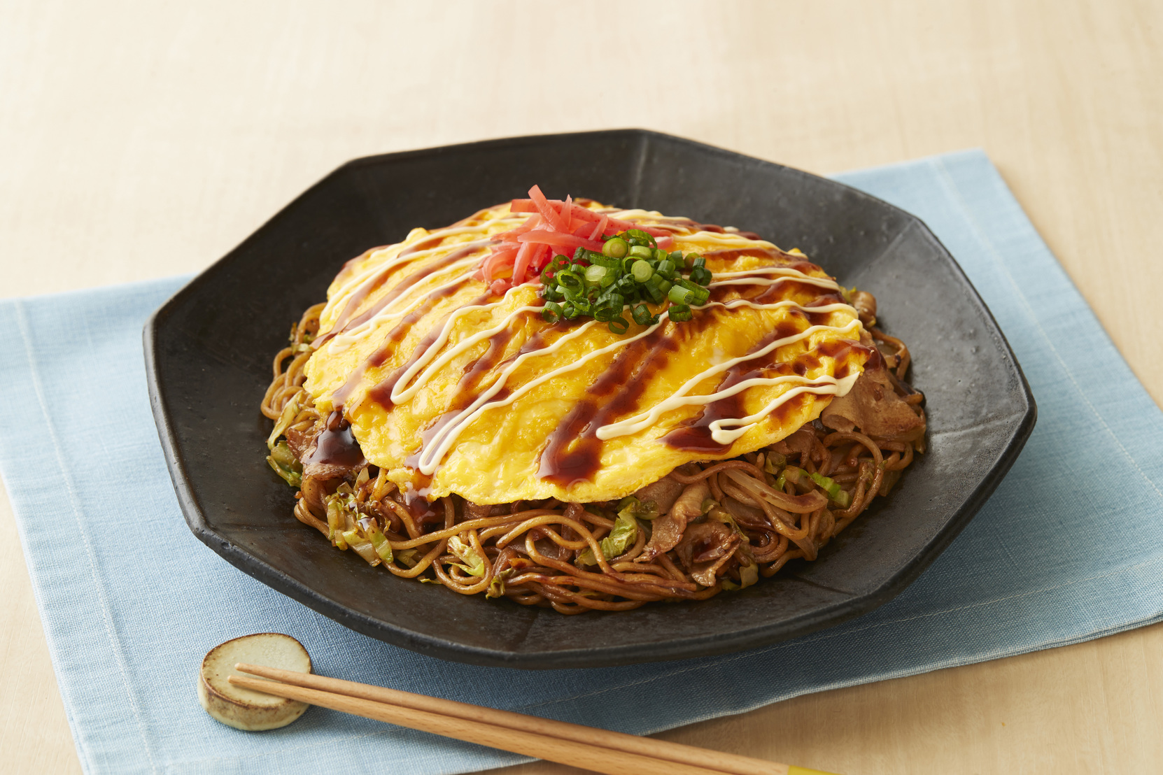 とろとろ卵を乗せるだけ!U.F.O.味のオムそばが完成です。