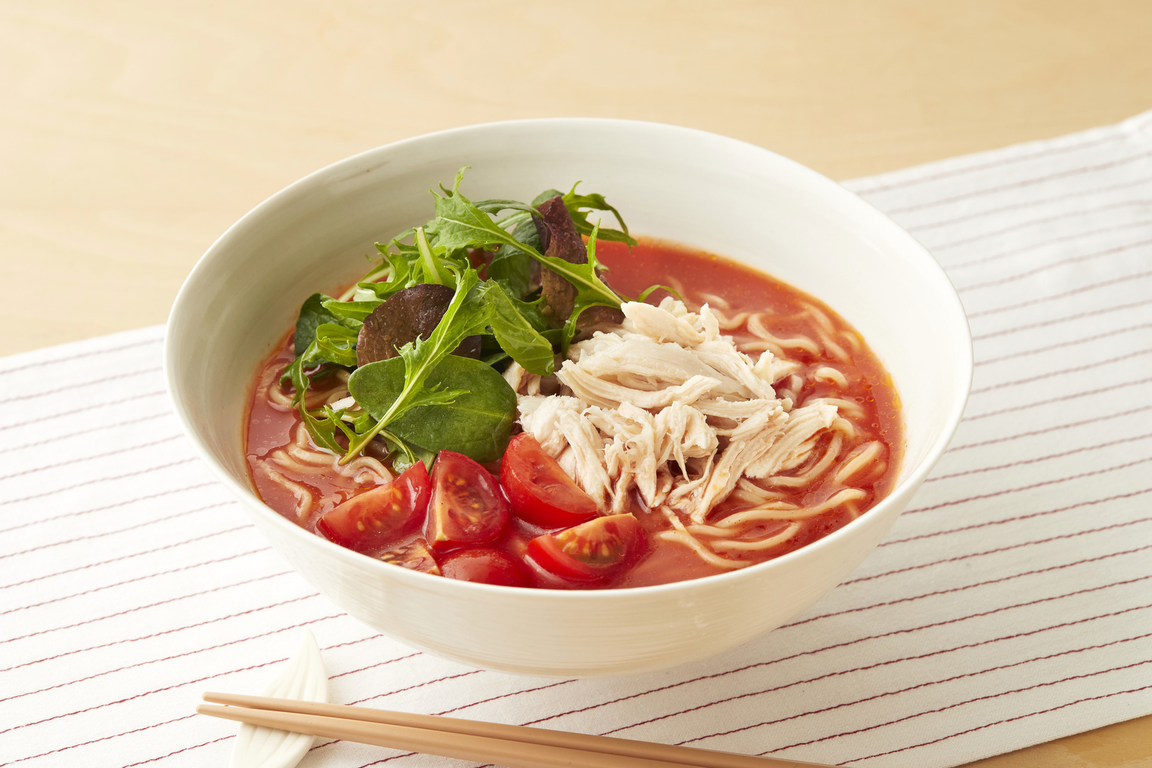 トマトジュースで簡単! 冷製トマトラーメン