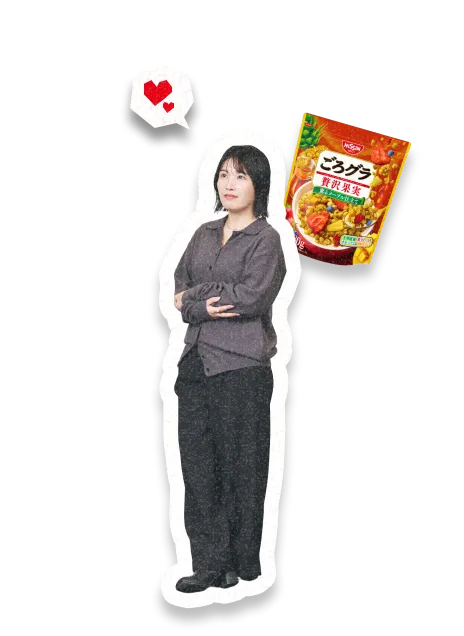 日清シスコに帰任した現在は、ブランドマネージャーとして「ごろグラ」シリーズの新展開を担っている。