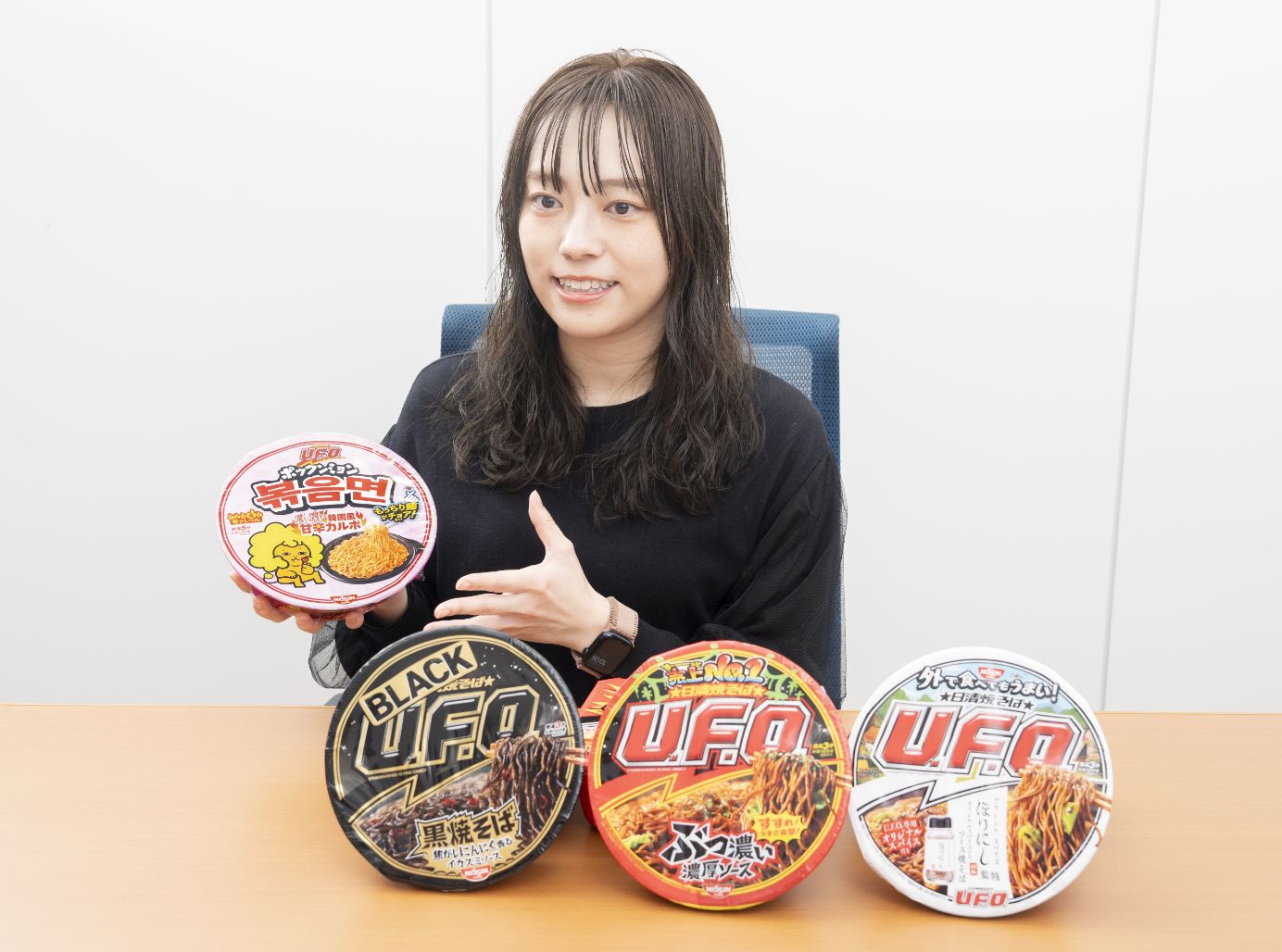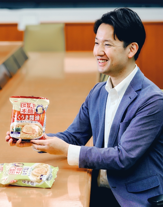 カップ焼そば『U.F.O.』のマーケティングを担う第4グループで、期間限定フレーバーの展開や他企業とのコラボ、部門横断型の企画を推進。 -