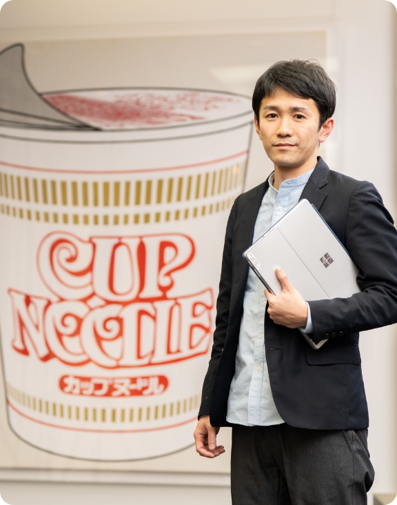 日清食品には、若手であっても一人ひとりのマーケターのアイデアを尊重する企業文化があると感じます。入社当初はピントのズレた企画を立ててしまったこともありましたが、チームメンバーは「なぜそう考えたの?」と考え方について掘り起こしてくれ、マーケティングがよりよい方向へ向かうように協力してくれました。また、日清食品には歴史とブランド力のある商品が複数あり、他企業やキャラクターとのコラボを実現しやすい点も魅力。新しいことにチャレンジしやすく、マーケターとして大きく成長できる環境だと思います。