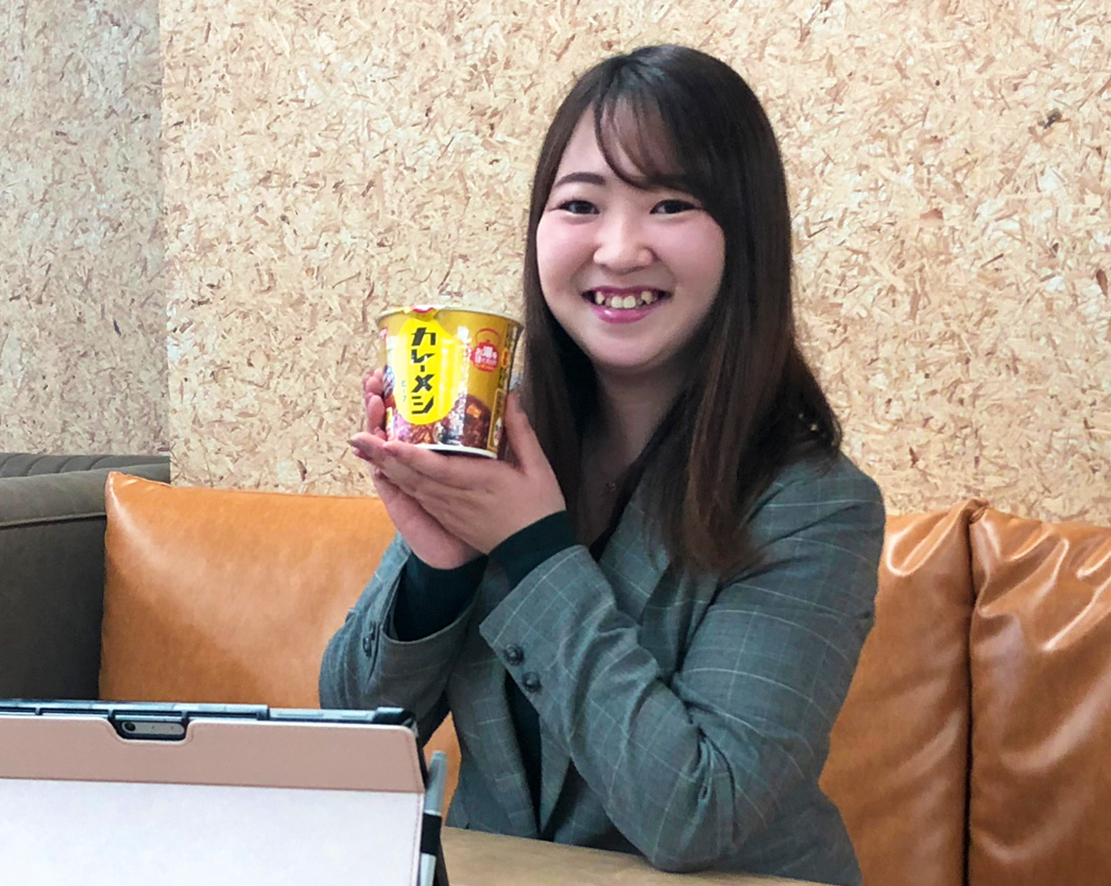 日清食品の採用選考には、他の会社にはない居心地の良さがありました。面接前には、控室で待機している学生やそこに来ていた人事担当者が、わいわいと自己紹介をし合って大賑わいでした。こんなに緊張しない選考は初めてで、「こんな同僚や先輩がいる職場なら自然体で働けそうだな」と感じていました。