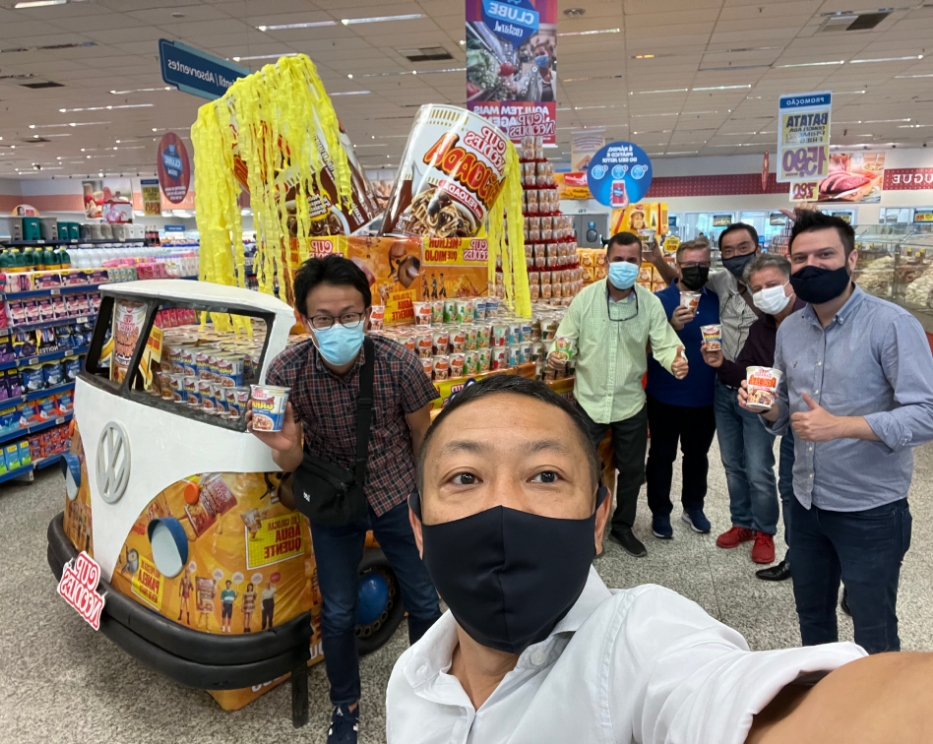 現在ブラジルの即席麺市場は、袋麺が主流ですが、カップ麺も拡大するチャンスがあり、ブラジル日清には今後のカップ麺市場を切り開いていく役割が求められています。海外カップ麺市場の拡大に成功すれば、他国への展開にも応用することができるため、日清食品全体の事業拡大に大きく貢献することにも繋がります。ただ、ブラジルの消費者にとって袋麺は馴染みのある食文化として定着している一方で、カップ麺は調理方法のイメージが湧かず、価格も袋麺に比べると割高なため、勝手に広まってくれるほど甘い話ではありません。食文化を創ることは1~2年でできることではありませんが、ブラジル国内でカップヌードルの無料サンプリング・製品の導入店舗数拡大・店舗内での大量陳列を地道に実施することで、認知が広がるスピードを意識的に加速させてきました。カップヌードルブランドのさらなる成長に加えて、カップ麺の製品ラインナップを拡充することで、袋麺中心のブラジルでカップ麺市場を創っていく。これが、私の実現すべきミッションだと思っています。